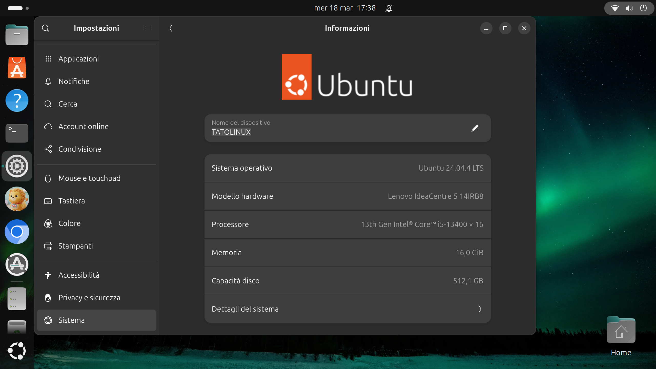Tato usa Linux, e nello specifico Ubuntu ,versione Desktop 24.04.4 LTS, distribuita da Canonical, liberamente scaricabile in italiano, visitando il sito www.ubuntu-it.org